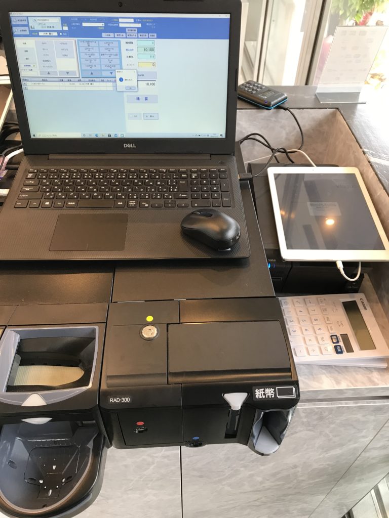 パソコン、釣銭機のホコリをとる